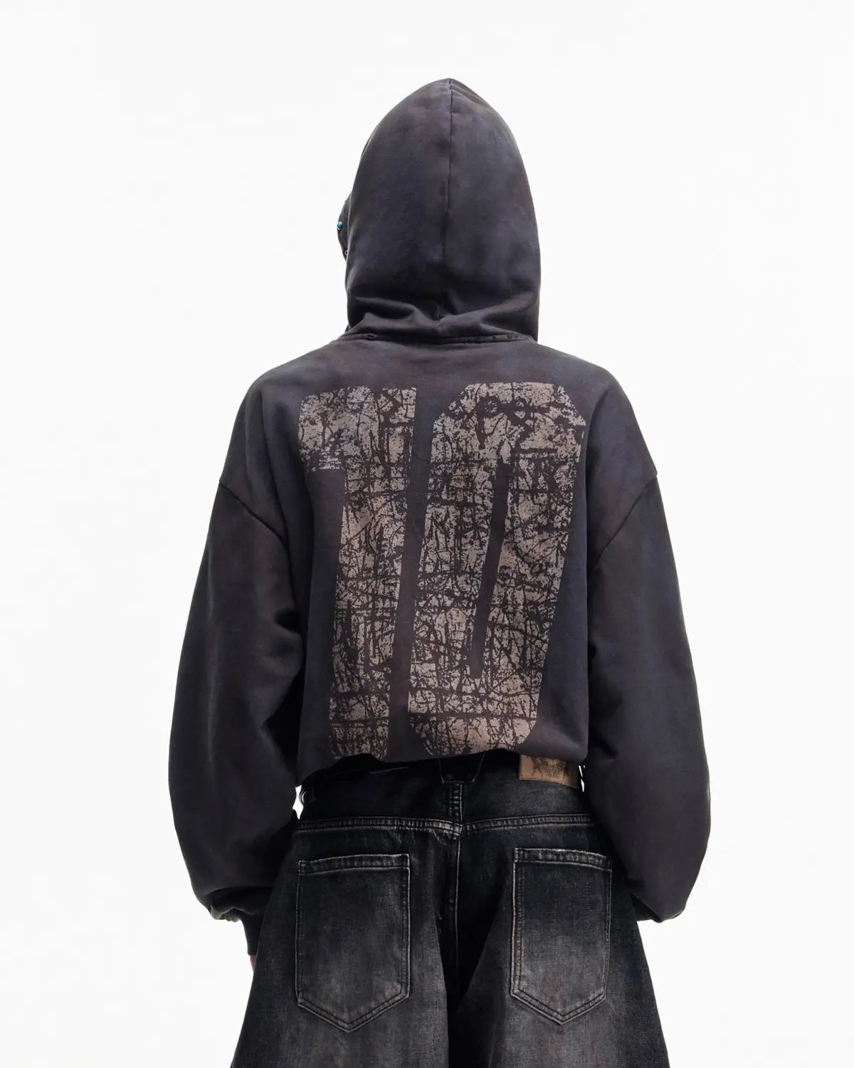 Crafted from double-layer fabric for superior structure and texture. The cropped silhouette enhances proportions and features inward-cuffed sleeves and hem for a sharp, contoured fit. Bold front graphic utilizes a distressed, fire-damaged print of a burning race car for maximum visual impact, complemented by bright red sleeve accents to enrich the visual layers.